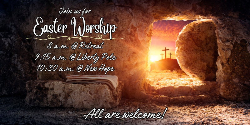 8:00 a.m. @ Retreat -- 9:15 a.m. @ Liberty Pole -- 10:30 a.m. @ New Hope